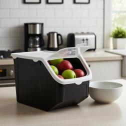 Gardez de l’ordre dans le garde-manger et sur le plan de travail avec ce grand réservoir de 12 l. Grâce à la trappe frontale transparente, vous contrôlez rapidement le contenu et prélevez facilement la quantité nécessaire. Le couvercle blanc hermétique protège de l’humidité et des odeurs, tandis que la ventilation réglable aide à prolonger la fraîcheur des fruits et légumes.