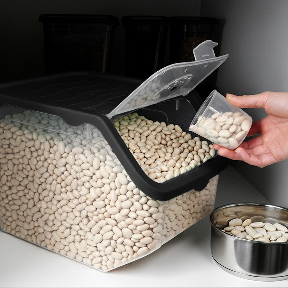 Boîte alimentaire pratique et spacieuse 12 l avec corps transparent et couvercle à clapet à clic pour un dosage facile. Convient pour les fruits, les légumes, les aliments secs ainsi que la nourriture pour animaux. Offre une ventilation réglable pour une fraîcheur prolongée, sans BPA, compatible congélateur et lave-vaisselle, et inclut une mesure.