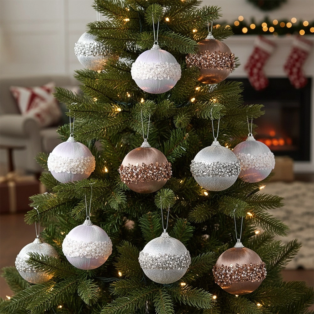 - Set pratique de 12 pièces – unifie facilement la décoration de Noël dans une palette élégante.