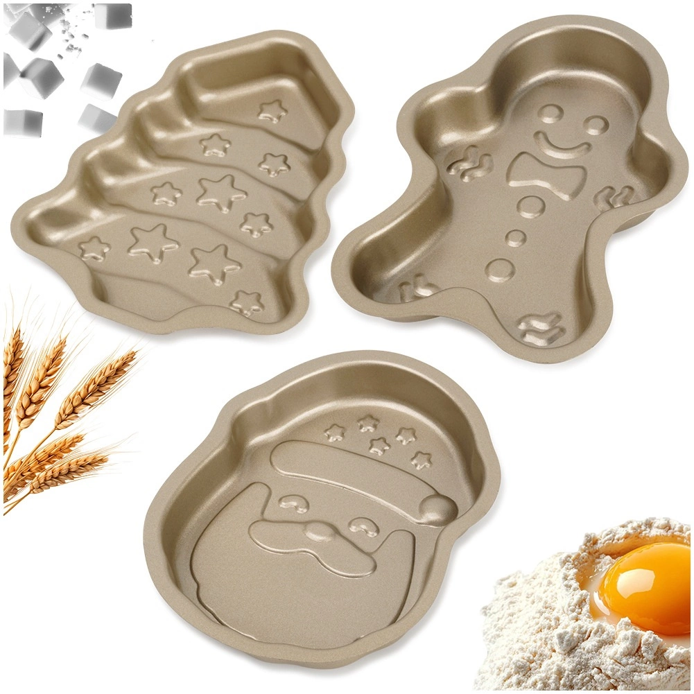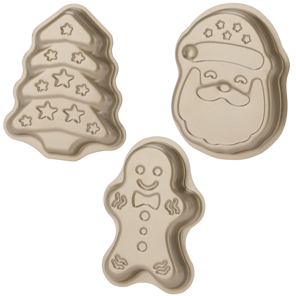 Découvrez un ensemble pratique de trois moules de pâtisserie aux formes festives – saint Nicolas, bonhomme en pain d’épices et sapin. Ils sont fabriqués en acier résistant couleur or champagne et dotés d’un revêtement antiadhésif PTFE pour un démoulage facile. Ils assurent une répartition uniforme de la chaleur et sont résistants à la chaleur jusqu’à 230 °C, compatibles avec le congélateur et le lave-vaisselle.