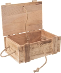 La caisse convient aussi comme emballage cadeau original – la personne qui la reçoit pourra réutiliser le coffret après l’ouverture. Les poignées en corde sur les côtés permettent un transport facile d’un endroit à l’autre.