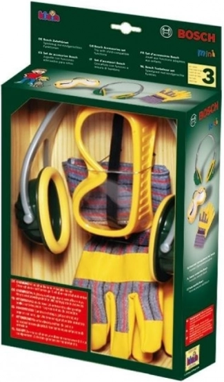Offrez aux petits bricoleurs un jeu sûr et amusant avec le kit pour enfants BOSCH de haute qualité. L’ensemble comprend des lunettes de protection, un casque antibruit et des gants de travail au design inspiré des véritables outils BOSCH. Idéal pour le jeu d’imitation et l’apprentissage de la sécurité à partir de 3 ans.