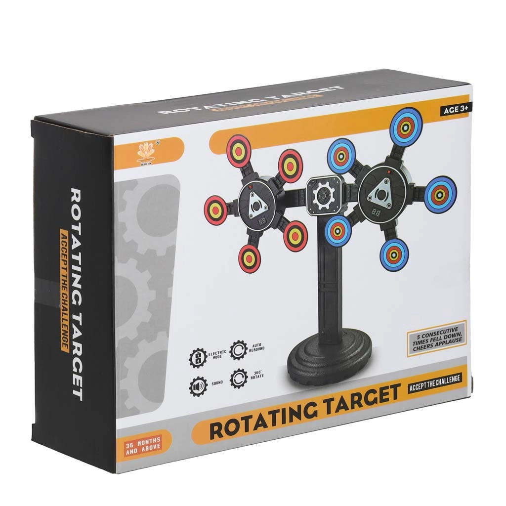Transformez l’entraînement à la maison en action ludique avec cette cible rotative électronique interactive. Cibles mobiles, comptage automatique des points et réactions lumineuses et sonores à l’impact propulsent votre précision et vos réflexes à un niveau supérieur. Base stable, matériaux plastiques sûrs et idéale pour projectiles en mousse, billes ou fléchettes – un choix parfait dès 3 ans pour toute la famille.