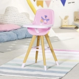 Cette chaise haute moderne pour poupées BABY born allie look scandinave et fonctionnalité pour le jeu quotidien. Des pieds évasés à l’aspect bois et un anneau repose-pieds assurent une stabilité fiable lors du service des petites gourmandises. Le siège rose avec dossier haut et motif adorable offre un confort optimal à la poupée.