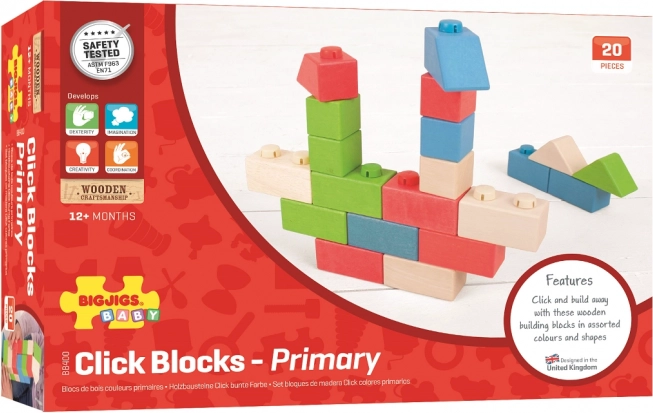 Le jeu de construction en bois Bigjigs Baby offre une combinaison unique de blocs en bois et de connecteurs en plastique permettant des constructions solides et stables. Les blocs de différentes formes et couleurs sont idéaux pour les petites mains.
