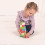 Grâce aux connecteurs en plastique, les blocs s’assemblent facilement, stimulant la créativité et la motricité des enfants.