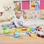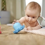 Ce poulpe de bain bleu est idéal pour explorer l’eau en s’amusant. Remplissez-le en le plongeant, bouchez les ouvertures sur sa tête avec un doigt, puis à la sortie de l’eau laissez l’eau s’écouler par le bas comme une douche. Une manipulation simple qui favorise la coordination œil-main et apprend à l’enfant les principes de cause et conséquence.