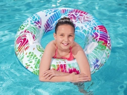 La bouée gonflable BESTWAY au design coloré apporte la joie des jeux d’eau et une détente en toute tranquillité. PVC robuste (0,21 mm) pour une longue durée de vie et une résistance à l’eau salée, tandis que les poignées pratiques aident à monter dessus et renforcent la stabilité pendant la baignade.