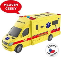 Cette ambulance détaillée au design tchèque des Services médicaux d’urgence apporte aux enfants beaucoup d’action et de divertissement. En appuyant sur un bouton, elle déclenche des annonces réalistes du centre de dispatching et de l’équipage, accompagnées d’un gyrophare fonctionnel avec lumière et d’effets sonores. Grâce à la propulsion à friction, le véhicule démarre facilement sur le sol sans avoir besoin d’être poussé en continu.