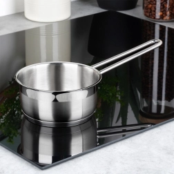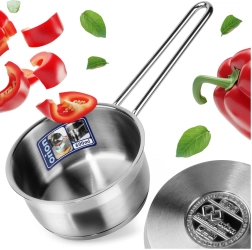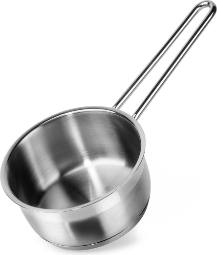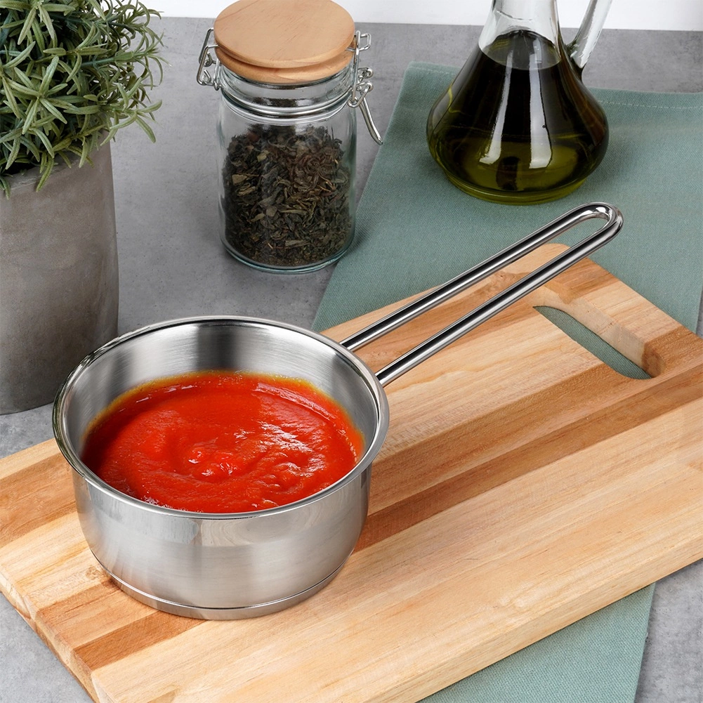 Pratique, la casserole en acier inoxydable de haute qualité, dans une élégante couleur argentée, séduit par sa résistance et sa polyvalence. Ses dimensions compactes la rendent parfaite pour chauffer le lait, les sauces ou les accompagnements, et elle convient très bien aux petites cuisines.