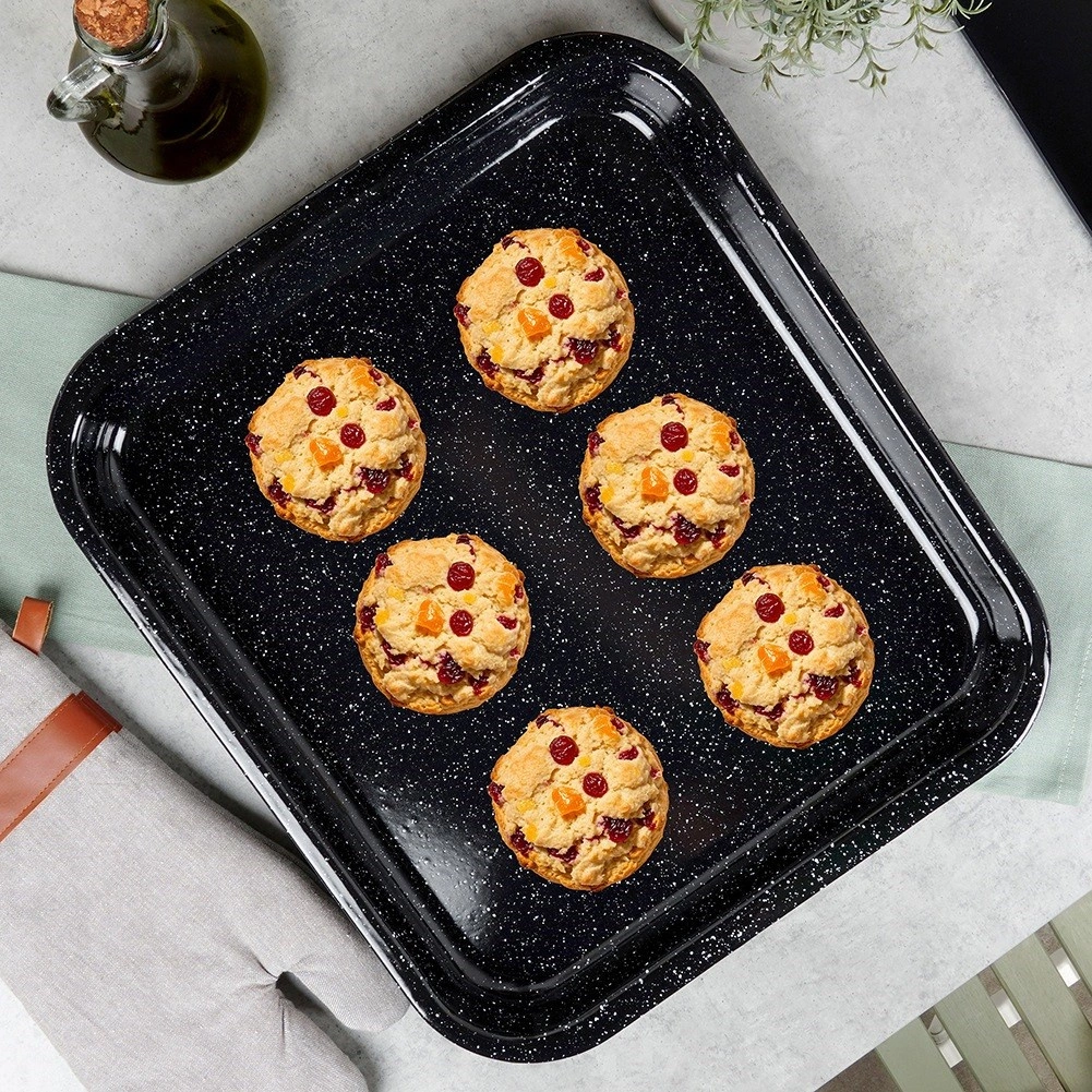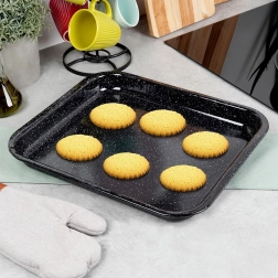 Découvrez un assistant de cuisine fiable – une plaque à pâtisserie émaillée en acier de qualité, dans une élégante couleur noire. L’émail est sans danger pour la santé et convient également aux personnes allergiques. La plaque répartit parfaitement la chaleur, les aliments ne brûlent pas et l’entretien est extrêmement simple.