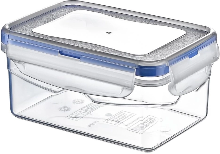 Récipient alimentaire pratique de 700 ml avec couvercle à quatre clips et joint en caoutchouc garantissant une étanchéité à 100 %. Fabriqué en plastique sûr sans BPA, adapté au réfrigérateur et au congélateur (jusqu’à -25 °C) ainsi qu’au chauffage au micro-ondes (jusqu’à +95 °C). Grâce à sa transparence, vous identifiez rapidement le contenu et vous pouvez le laver facilement au lave-vaisselle.