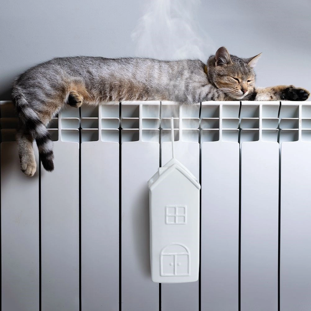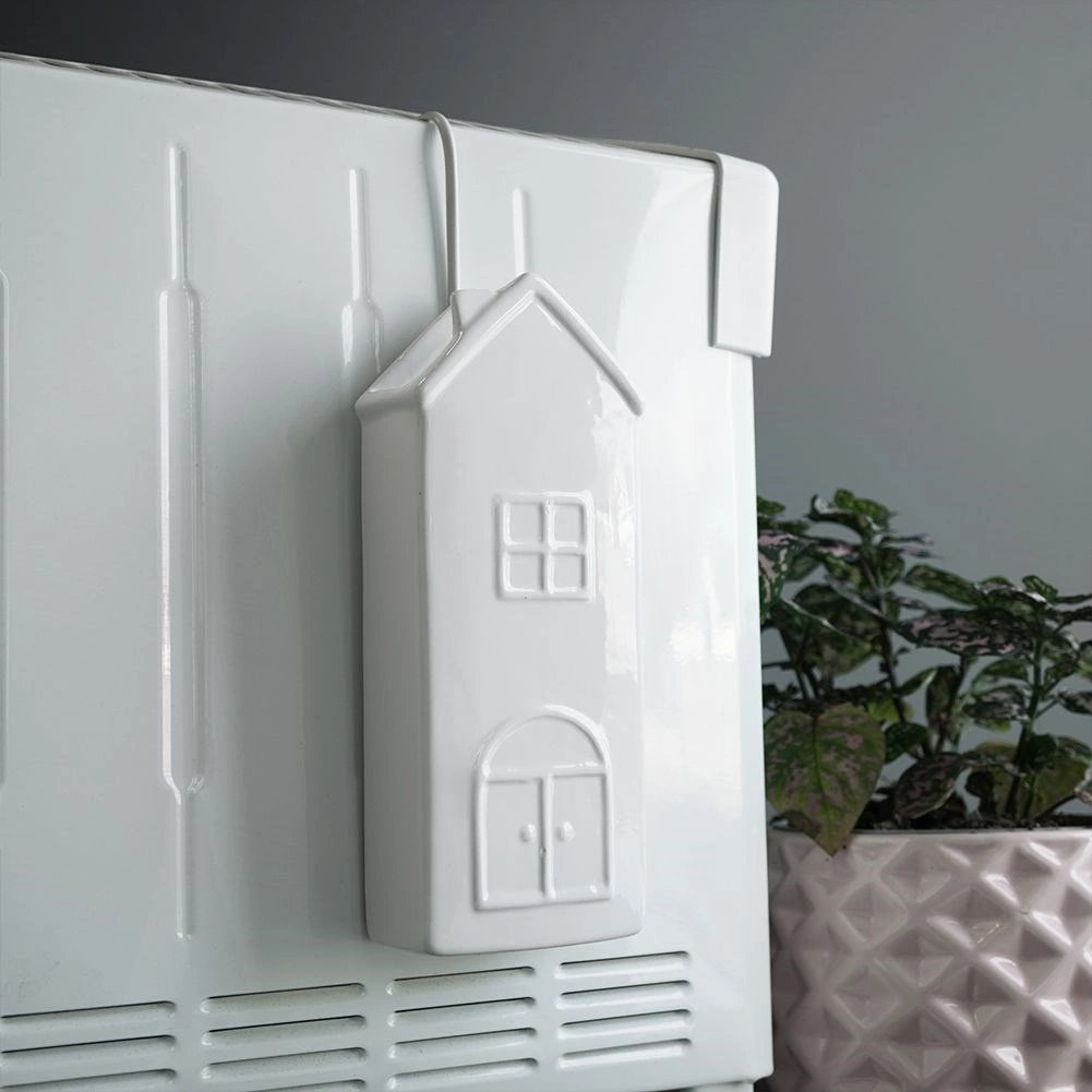 Élégant humidificateur d’air en céramique pour radiateur en forme de maison, d’une capacité de 300 ml, qui aide à maintenir une humidité optimale pendant la saison de chauffage. Grâce à sa suspension simple sur crochet métallique et à son utilisation facile, il suffit simplement d’ajouter de l’eau. Sa glaçure blanche et son design décoratif s’intègrent à tous les intérieurs. La céramique de qualité garantit une longue durée de vie et un fonctionnement sûr.