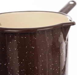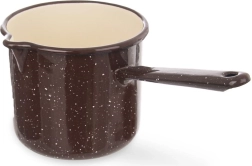 Cette casserole marron stylée, mouchetée de beige, est idéale pour la cuisine quotidienne : cuisson, mijotage et réchauffage de petites portions et de sauces. Grâce à ses dimensions compactes, elle est parfaite pour les petits foyers. La surface émaillée est lisse, résistante et respectueuse des aliments.
