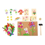 Créez des images féeriques sur une plaque en liège à l’aide de pièces en bois et en carton. Le kit comprend de petits clous et un marteau en bois pour une fixation facile, ainsi que des modèles pour l’inspiration et une boîte de rangement pratique. Le jeu développe parfaitement la motricité fine, la créativité et la concentration.