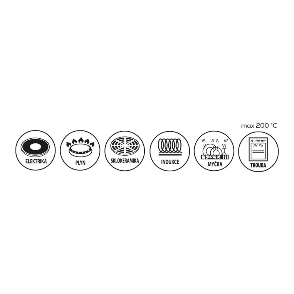 Les poignées ergonomiques revêtues de silicone noir restent froides pendant la cuisson et le couvercle en verre avec valve vapeur permet de contrôler la préparation des plats et d’évacuer aisément l’excès de vapeur. La casserole est compatible avec les plaques à gaz, électriques, vitrocéramiques, halogènes et à induction et, sans couvercle, résiste au four jusqu’à 200 °C.