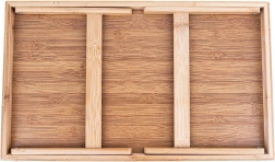 Le bambou est naturellement résistant à l’humidité et aux déformations, sèche rapidement et n’absorbe pas les odeurs. Le plateau peut également être utilisé séparément – il possède des poignées pratiques pour un transport sécurisé. Entretien facile et look naturel intemporel adapté à tous les intérieurs.