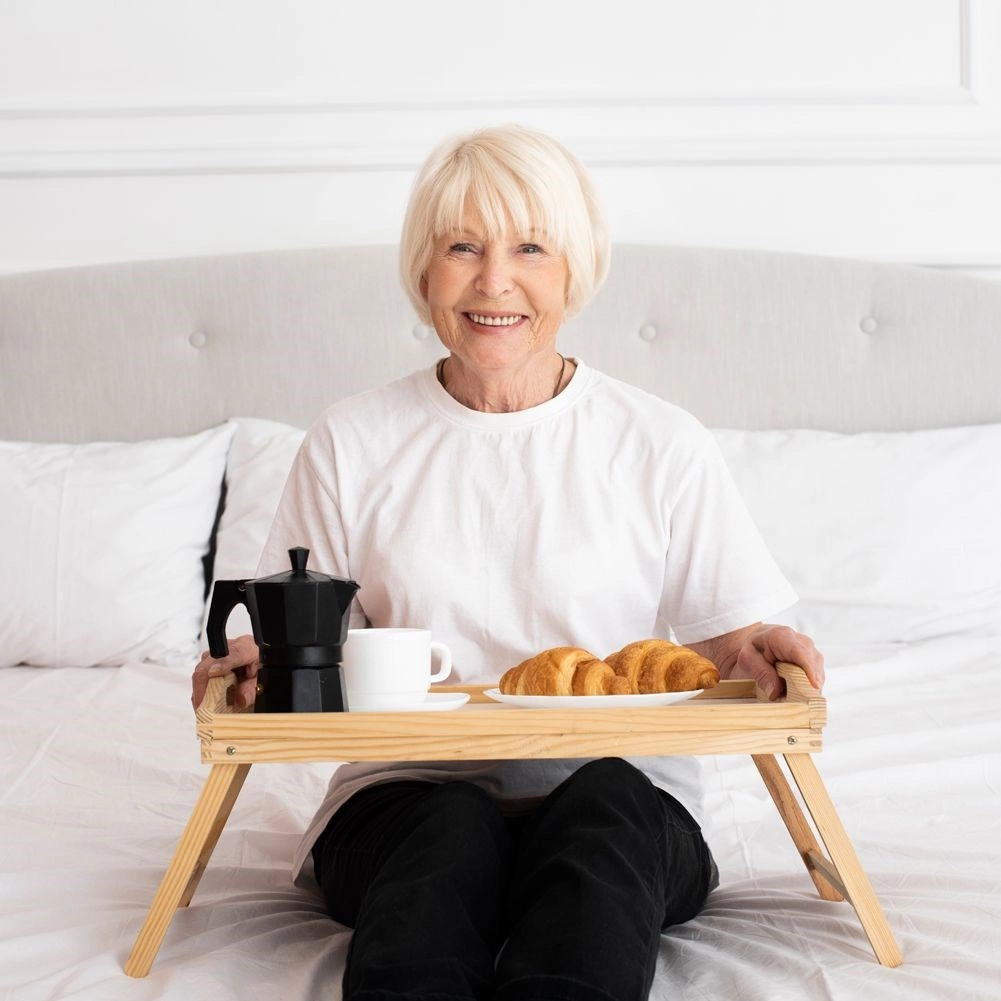 La table de petit-déjeuner pliante en bambou de qualité facilite les activités quotidiennes à la maison. Utilisez-la pour servir le petit-déjeuner au lit, vous détendre devant un film ou comme table pour travailler avec un ordinateur portable ou une tablette. Grâce à ses dimensions compactes et à sa structure pliante, elle se range facilement et est prête à l’emploi en un instant.