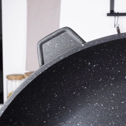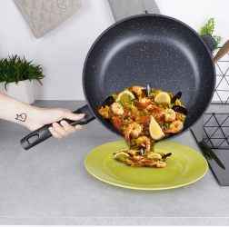 La poêle en granit de la gamme Grande associe un corps en aluminium massif à un revêtement antiadhésif durable Pfluon Granit pour une cuisine plus saine, sans attacher. La conduction thermique efficace raccourcit les temps de préparation et économise l’énergie, tandis que la poignée ergonomique reste froide et confortable à tenir.