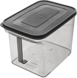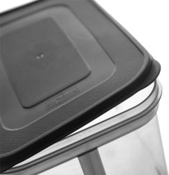 Gardez votre cuisine en ordre avec un contenant spacieux qui protège vos aliments de l’humidité et des odeurs étrangères. Le couvercle hermétique empêche les déversements et l’humidification et les parois transparentes facilitent le contrôle du niveau des réserves. La poignée ergonomique latérale assure une manipulation confortable même lorsqu’il est plein.