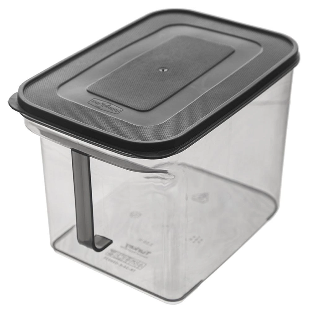 Contenant pratique pour aliments secs avec couvercle et poignée latérale pour un transport facile. Idéal pour la farine, le sucre, le sel, la semoule ou les céréales. Capacité de 3,25 l et dimensions 23 × 15,5 × 15,5 cm. Fabriqué en plastique gris foncé transparent et résistant, qui permet de vérifier rapidement le contenu. Stockage à l’abri de l’humidité, couvercle hermétique, compatible lave-vaisselle, micro-ondes sans couvercle et congélateur.