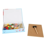 Planche en liège, marteau, pièces colorées et trous pré-percés pour un cloutage facile – le tout dans une boîte élégante, idéale pour offrir.
