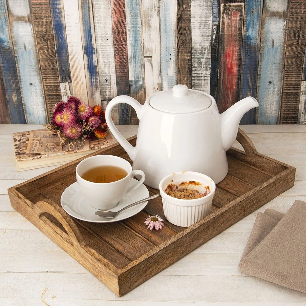 Le plateau convient non seulement au service des mets et boissons, mais aussi comme support décoratif pour bougies ou herbes. Facile d’entretien ; pour une longue durée de vie, un entretien occasionnel à l’huile alimentaire suffit. Le bois de manguier, écologique, est sûr au contact des aliments et résistant aux déformations et à l’humidité.
