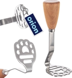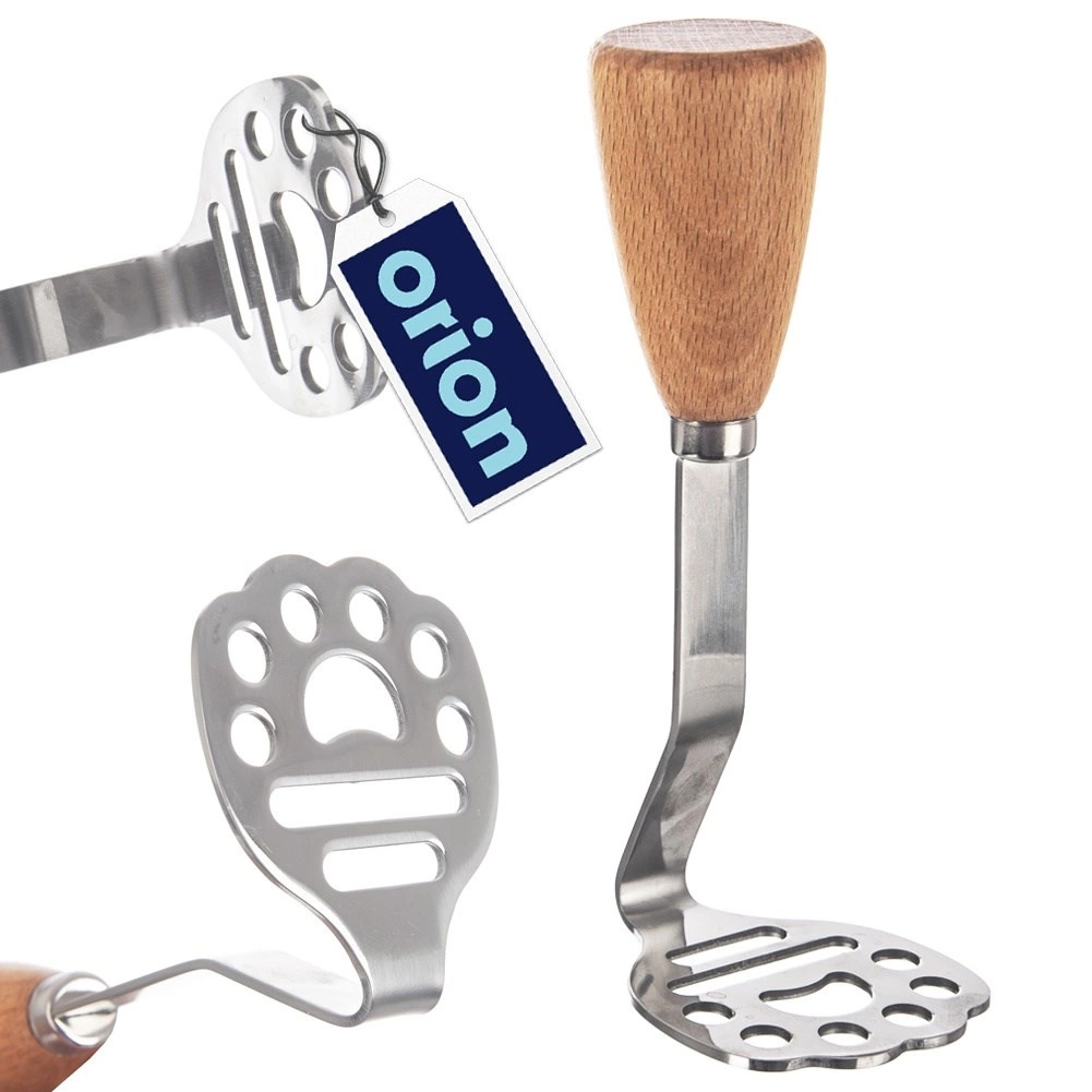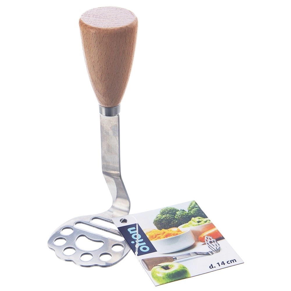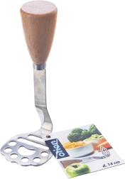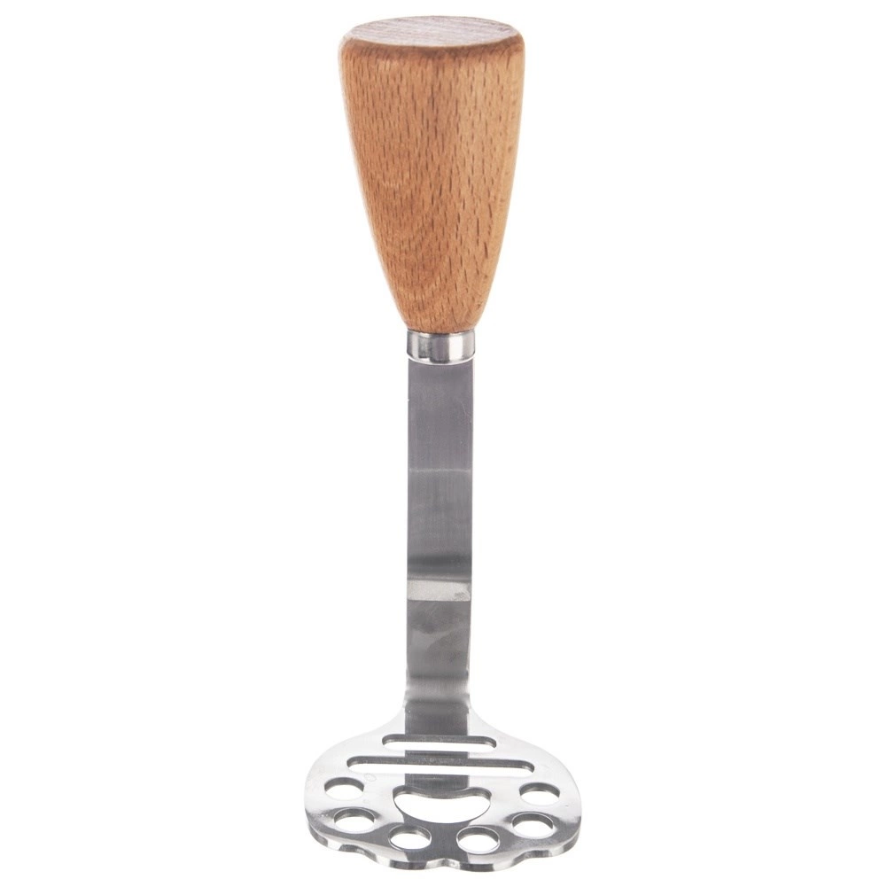 Presse-purée pratique en acier inoxydable de qualité avec manche ergonomique en bois pour un purée lisse sans effort. Dimensions compactes 5,5 × 14,5 cm, construction durable, nettoyage facile et utilisation polyvalente pour pommes de terre, légumes, fruits et tartinades.