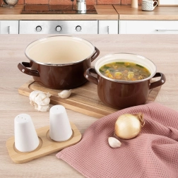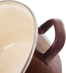La casserole émaillée au style rétro de la série Brown allie durabilité, design intemporel et praticité au quotidien. Extérieur marron, intérieur beige crème, avec un rebord renforcé en acier inoxydable pour une plus longue durée de vie. Parfaite pour les soupes, sauces et accompagnements, elle convient aussi pour un service élégant directement à table.