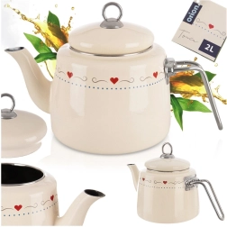 La bouilloire stylée Tonca est idéale pour faire chauffer rapidement l’eau au quotidien pour le café, le thé ou les infusions, et sert également de théière décorative pour un service direct à table. L’émail est sans danger pour la santé et convient aussi aux personnes allergiques, tandis que les éléments en inox apportent résistance et longévité.