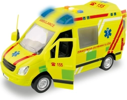 Une ambulance jouet réaliste à l’échelle 1:16 offre aux enfants une expérience authentique d’intervention de secours. Elle fonctionne à inertie, dispose d’un gyrophare fonctionnel à lumières bleues, de messages vocaux tchèques de l’équipage et du dispatching, de portes ouvrantes et est livrée avec piles.