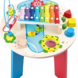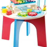 Table d’activité musicale en bois robuste et colorée pour enfants, pleine d’éléments interactifs qui favorisent l’éveil musical et le développement de la motricité fine.