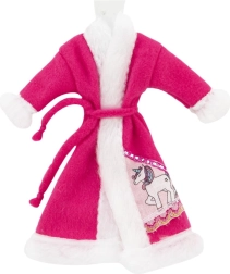 Peignoir stylé pour poupées avec surface veloutée et ceinture à nouer qui réchauffe après le bain et accompagne les rituels du soir. Proposé en assortiment de couleurs et motifs (p. ex. licorne), il se combine facilement avec d’autres tenues.