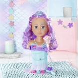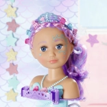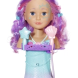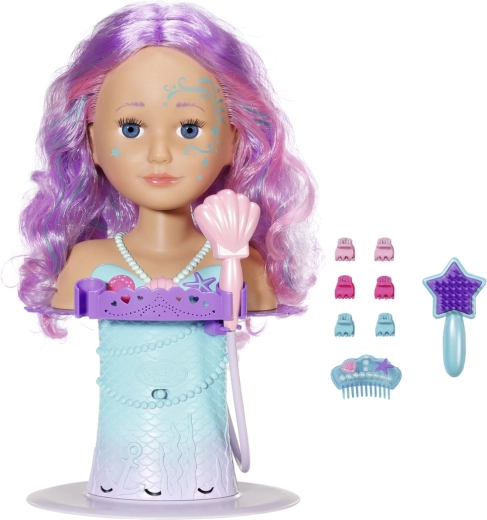 Transformez le bain en un salon de beauté magique avec la tête à coiffer BABY born Sister au design de sirène. Grâce aux ventouses, elle se fixe facilement sur le bord de la baignoire, où elle ravira avec de longues mèches de qualité pour des coiffures infinies, une douche électronique avec pompe et de nombreux accessoires. Elle stimule la créativité, la motricité fine et offre un divertissement durable pour laver, coiffer et décorer les cheveux.