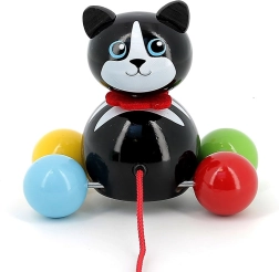Le chat à tirer Minou est un excellent compagnon pour les premières promenades dans la maison. Grâce à ses roues à billes colorées et à la ficelle rouge, les enfants s’y attachent rapidement et développent naturellement leur motricité globale, leur stabilité et la coordination œil–main. Sa construction légère et robuste en bois massif laqué est agréable au toucher et facile à entretenir.