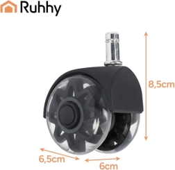 Remplacez les anciennes roulettes par les roulettes modernes et silencieuses RUHHY 2,5". Elles offrent un fonctionnement silencieux (moins de 25 dB), un mouvement fluide à 360° et une protection des sols sans rayures grâce à la bande de roulement en PU souple. Leur axe universel 11 × 22 mm et leur montage rapide sans outils en font un choix idéal pour les stratifiés, parquets, carrelages et moquettes.