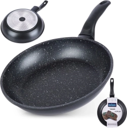 Poêle universelle en granit de 24 cm de diamètre pour la cuisine quotidienne. Grâce au revêtement antiadhésif effet granit sans PFOA ni PTFE, préparez des plats avec un minimum de matière grasse, une répartition uniforme de la chaleur et une cuisson rapide et économe. La poignée ergonomique ne chauffe pas, la poêle est compatible gaz, électrique, vitrocéramique, halogène et induction et peut être lavée au lave-vaisselle.