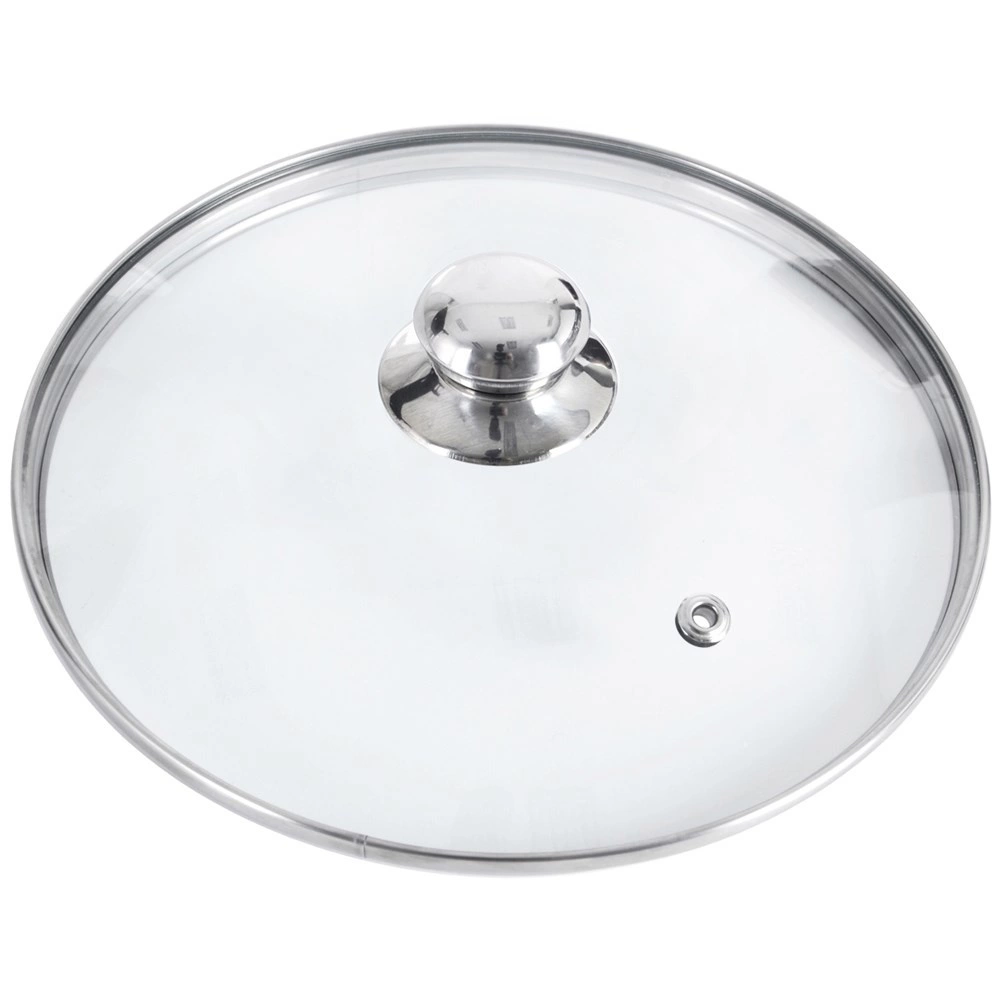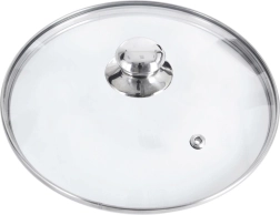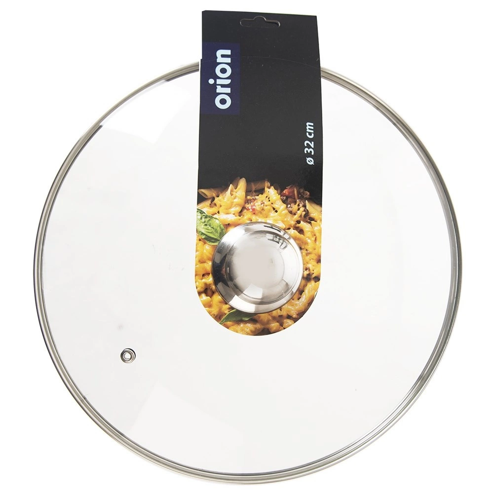 Couvercle universel en verre de 32 cm de diamètre avec bord et bouton en inox, s’adapte parfaitement aux casseroles et aux poêles. Le verre trempé transparent permet de contrôler la cuisson sans soulever le couvercle, l’orifice d’évent évacue l’excès de vapeur et la forme légèrement bombée favorise la circulation de la chaleur. Grâce à son ajustement serré, il accélère la cuisson et limite les éclaboussures.
