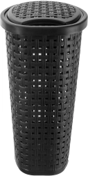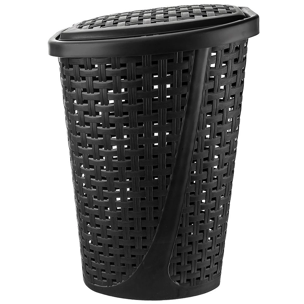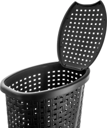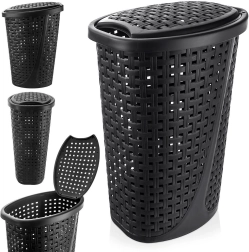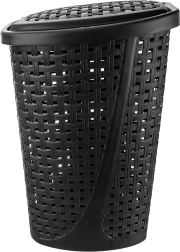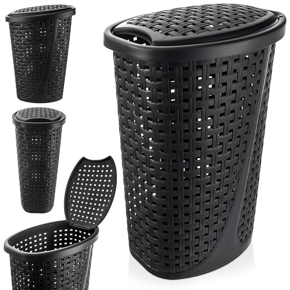 Panier à linge pratique de 45 l avec couvercle refermable, dans une élégante couleur noire. Grâce à sa forme étroite, son aspect rotin aéré et son plastique léger mais résistant, il convient parfaitement à côté de la machine à laver et même aux petites salles de bains. Poignées intégrées, perforations respirantes pour limiter les odeurs et ouverture facile du couvercle pour un usage quotidien confortable.