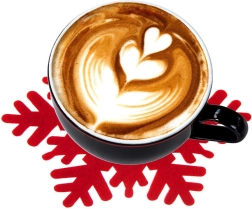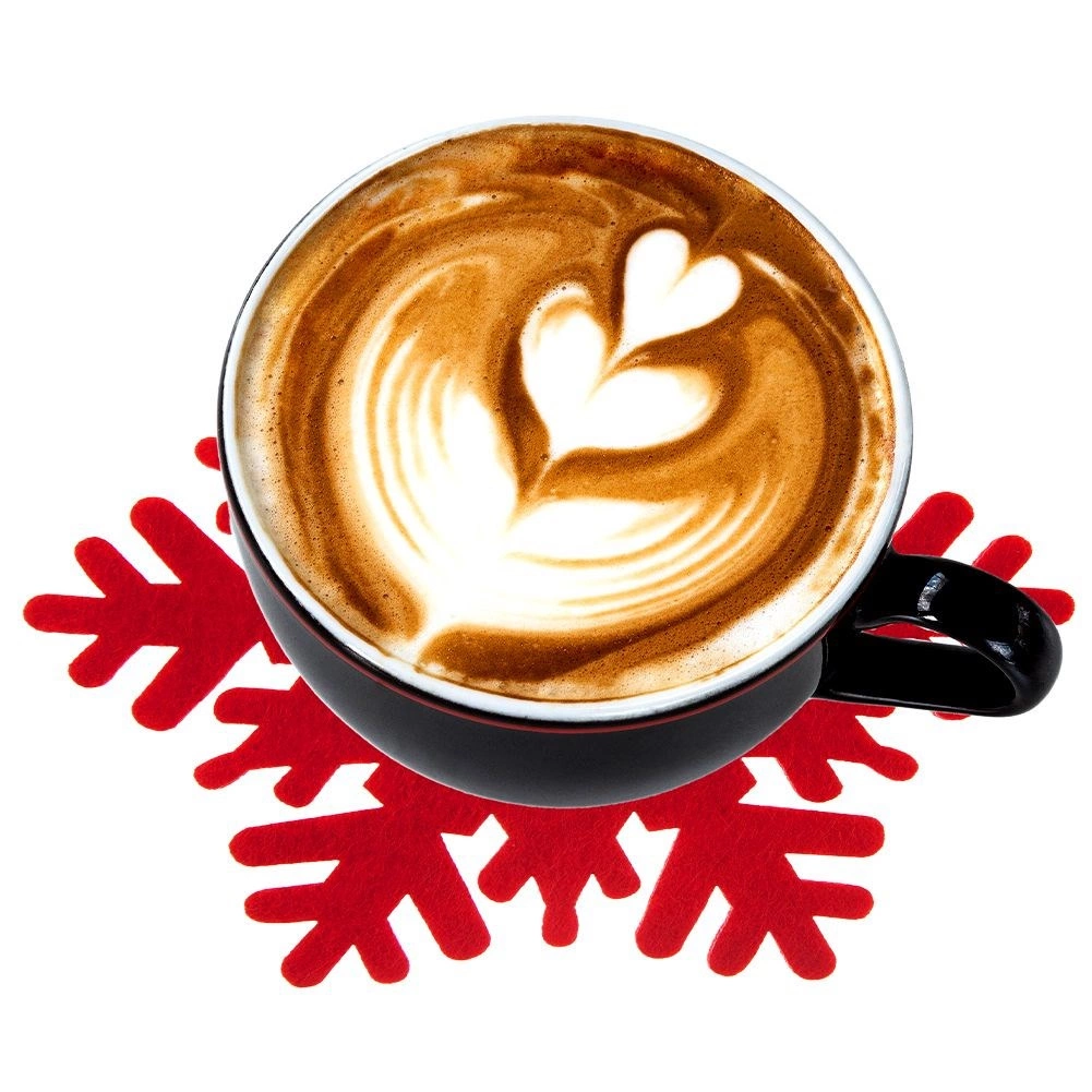 Des dessous de verre en feutre stylés en forme de flocon, de couleur rouge, protègent la table de la chaleur, de l’humidité et des rayures, tout en apportant une atmosphère festive. Le lot comprend 6 pièces de 13,5 × 13 cm. Idéals pour tasses, verres et mugs – parfaits comme décoration, protection de surface pratique et accessoire hivernal/de Noël pour la table.