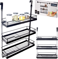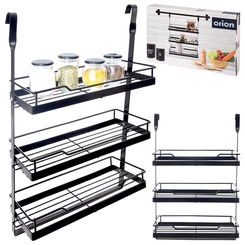 Trois paniers aux bords relevés accueillent épices, boîtes et petits objets – tout est bien ordonné et à portée de main.