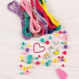 7 fils de coton colorés, un cordon métallisé argenté, 3 cordons colorés, des perles, des breloques et des instructions claires – vous pouvez commencer à créer immédiatement.