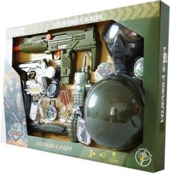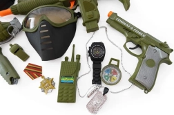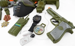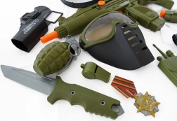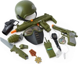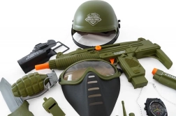 Coffret pour petit soldat avec casque, pistolet et autres accessoires.