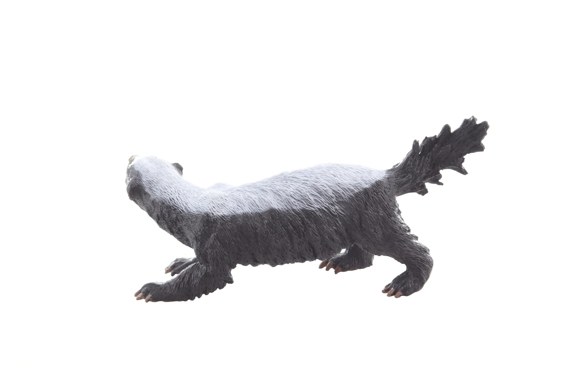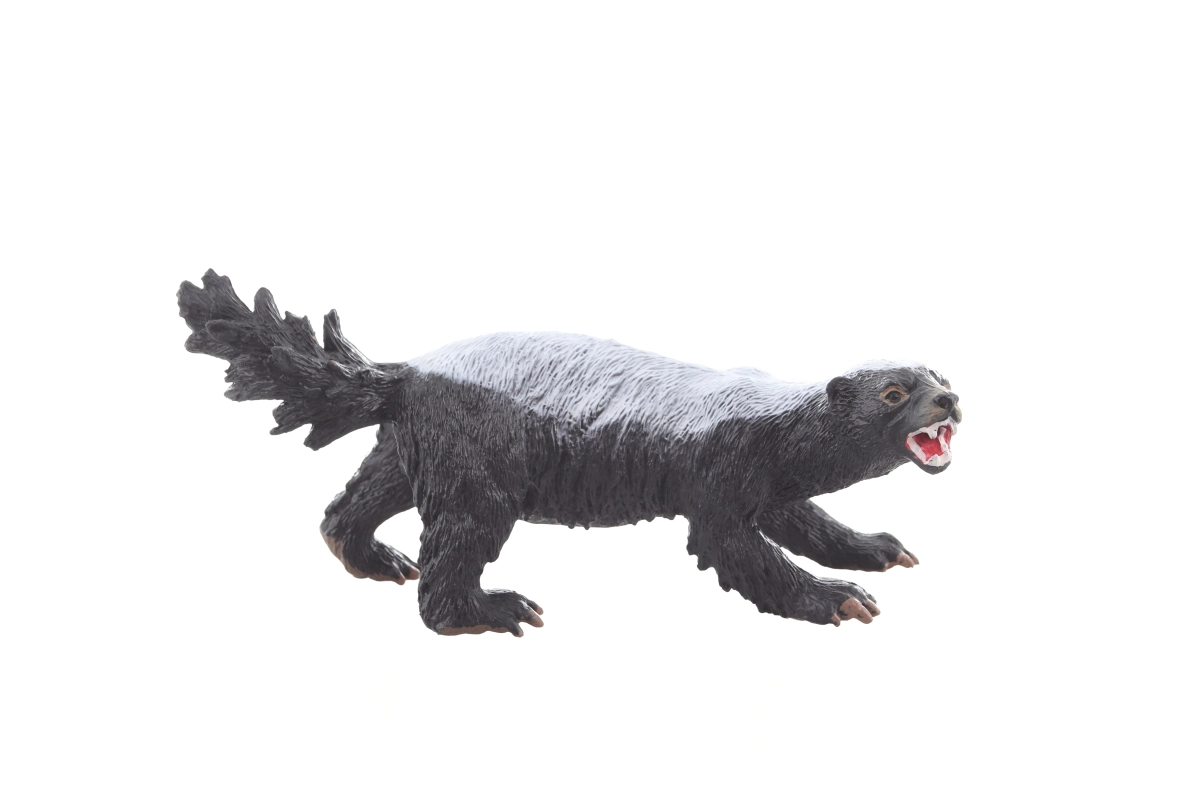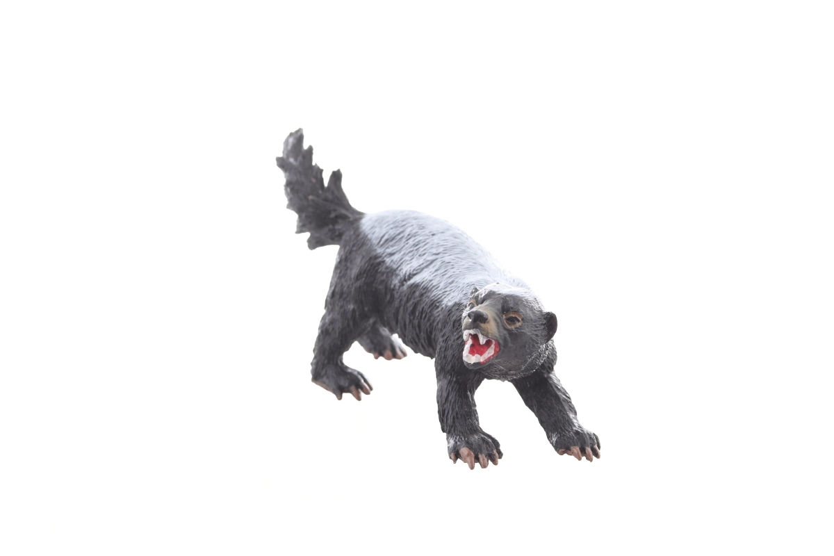 Modèle détaillé de ratel avec gueule ouverte et texture du pelage, stimulant l’imagination et les connaissances sur la nature.