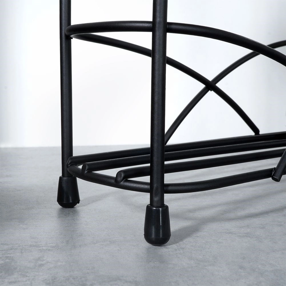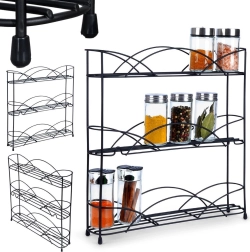 Organisez vos épices de façon claire et toujours à portée de main. Cette étagère métallique noire à trois niveaux offre une solution astucieuse pour la cuisine comme pour la salle de bains. Sur les trois tablettes, rangez facilement épices, huiles, condiments ou petits accessoires. La structure stable avec embouts en caoutchouc protège le plan de travail et évite les glissements.
