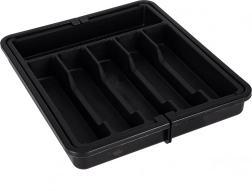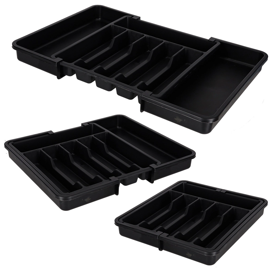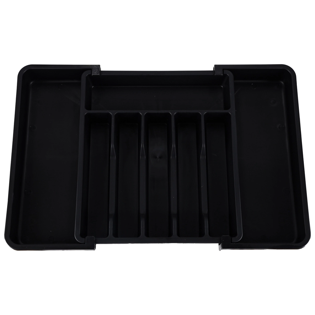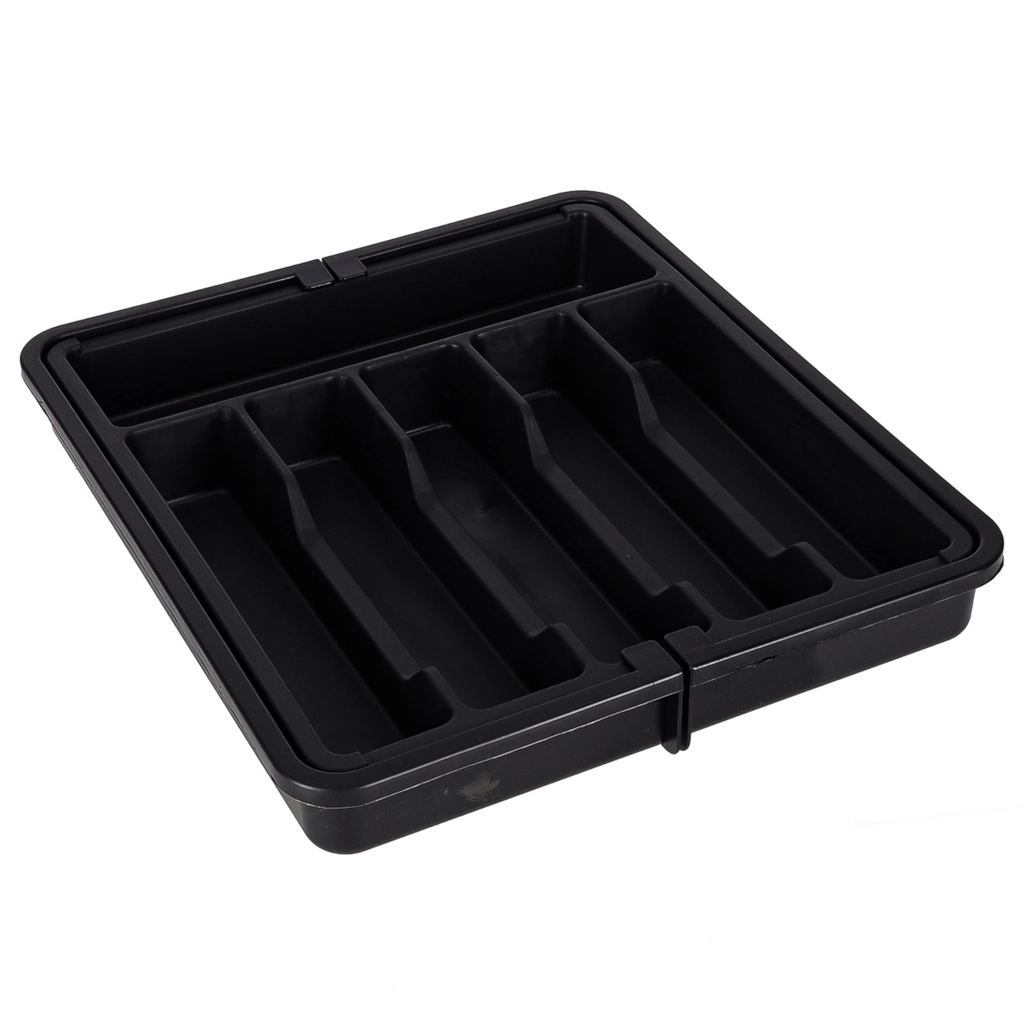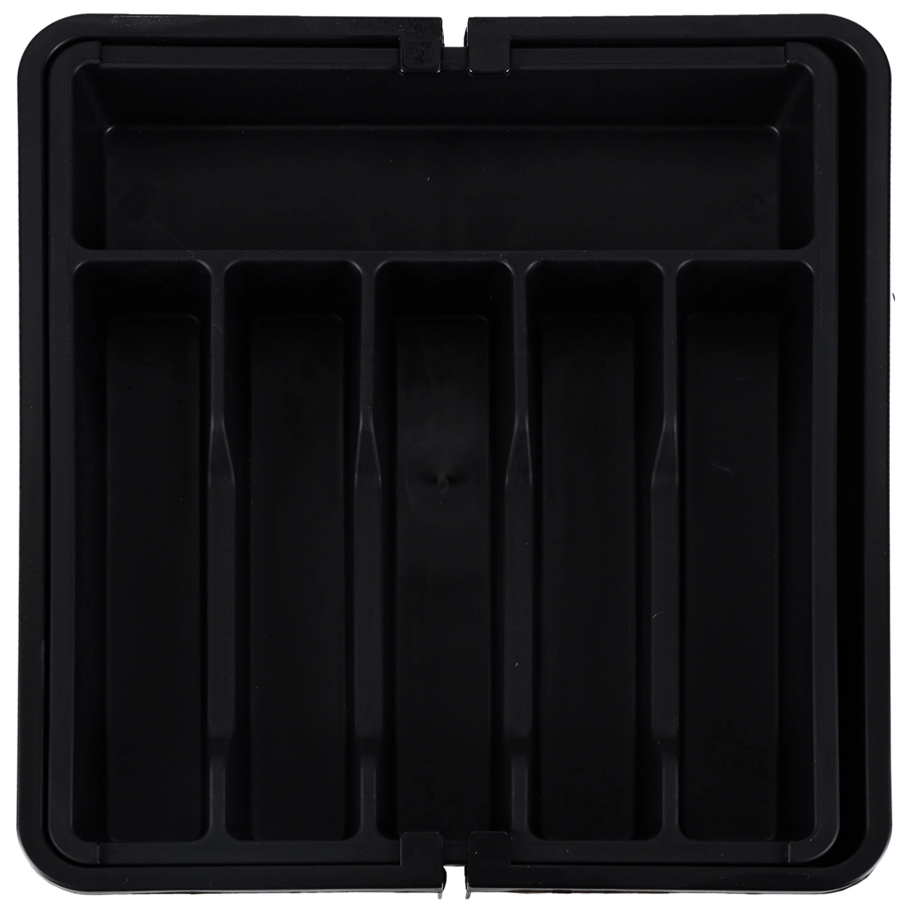 Un insert de tiroir de cuisine moderne et modulaire qui aide à exploiter au maximum l’espace disponible. Sa structure extensible permet de régler précisément la largeur pour que l’organisateur s’insère parfaitement dans des tiroirs étroits comme larges. Finition noire élégante et surfaces lisses faciles à entretenir pour un look uniforme dans la cuisine.