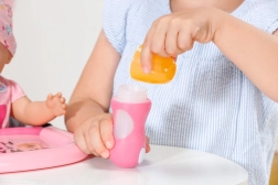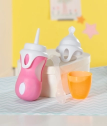 Profitez de la flexibilité avec deux embouts : un pour boire et un autre avec une cuillère pour nourrir, faisant de ce jouet un accessoire universel pour chaque jeu de poupées.