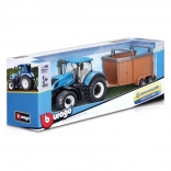 Tracteur Fermier Bburago New Holland avec remorque pour chevaux