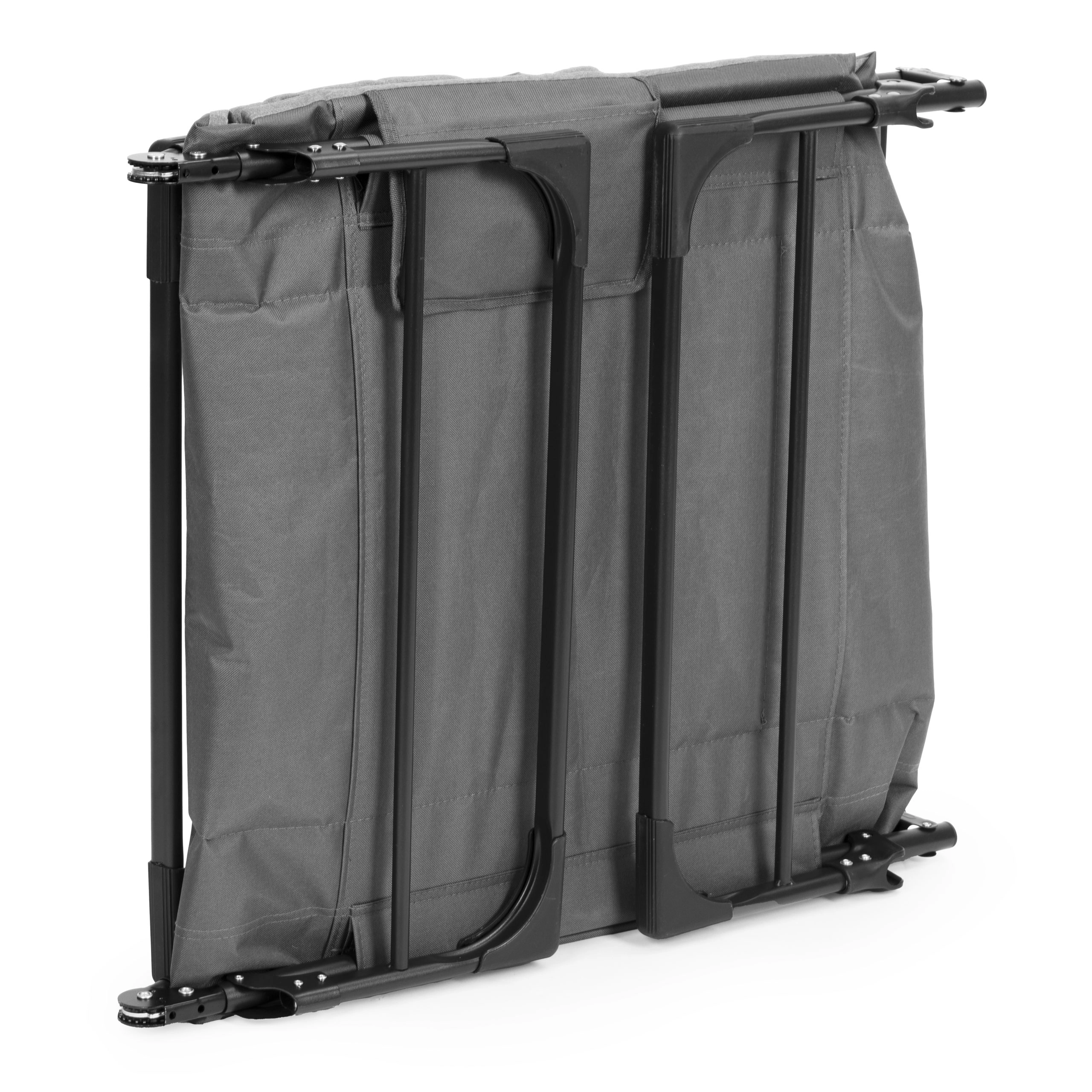 L’acier peint par poudrage résiste aux intempéries et les embouts antidérapants améliorent la stabilité sur diverses surfaces – au jardin, à la plage ou au camping.