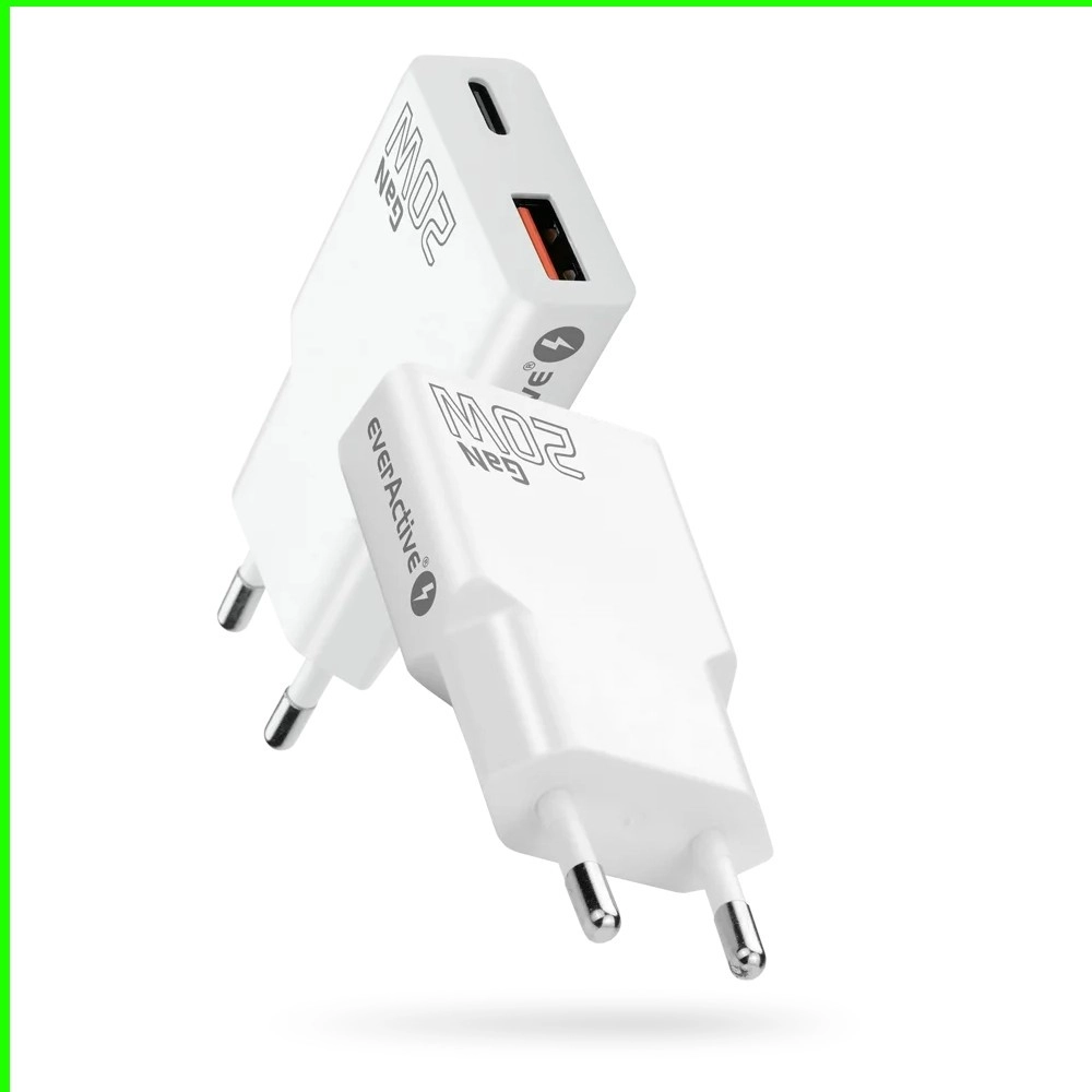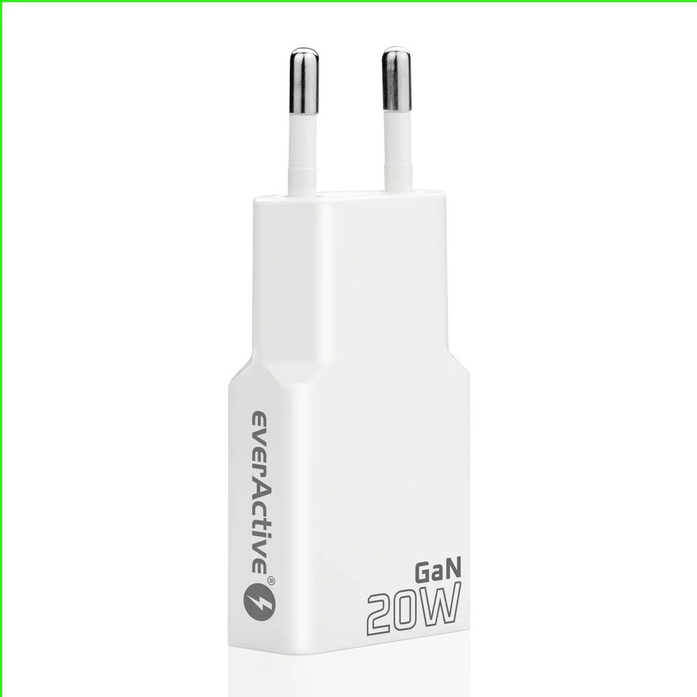 Chargeur secteur everActive GaN Super Slim 20 W avec USB‑C PD et USB‑A QC 3.0